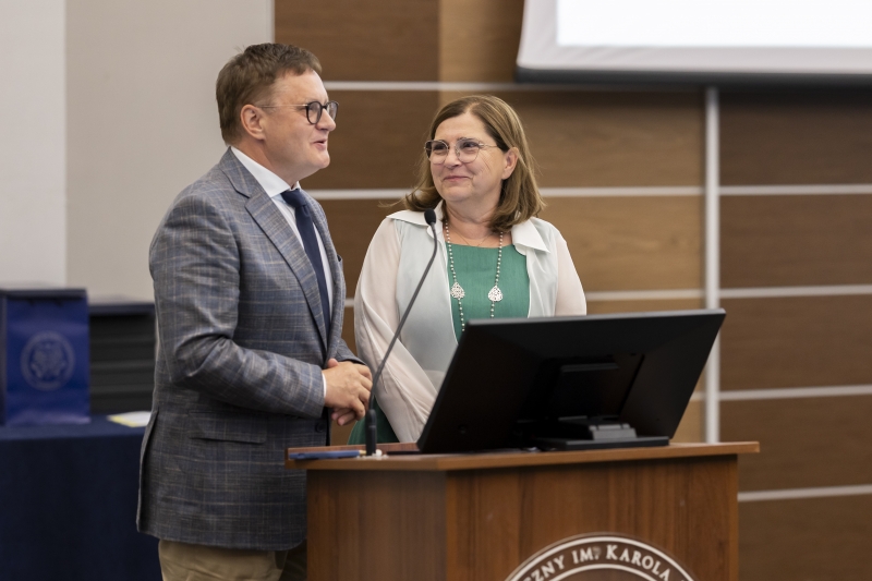 Prorektor ds. Dydaktyki, Pani prof. dr hab. Dorota Zozulińska- Ziółkiewicz wręczyła statuetki Kotwica Wiedzy, które przyznawane są osobom lub jednostkom wnoszącym istotny wkład w rozwój jakości kształcenia na UMP. W 2025 roku Kotwice Wiedzy otrzymali: prof. dr hab. Andrzej Tykarski, prof. dr hab. Małgorzata Kotwicka, dr Beata Buraczyńska- Andrzejewska oraz Centrum Symulacji Medycznej.